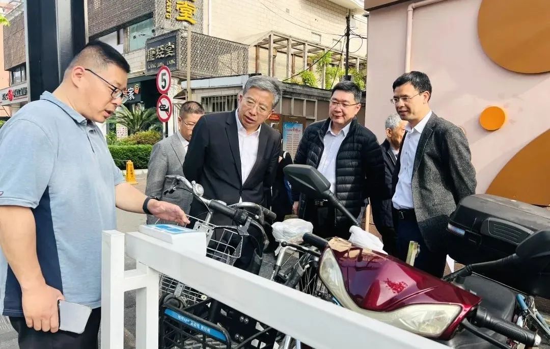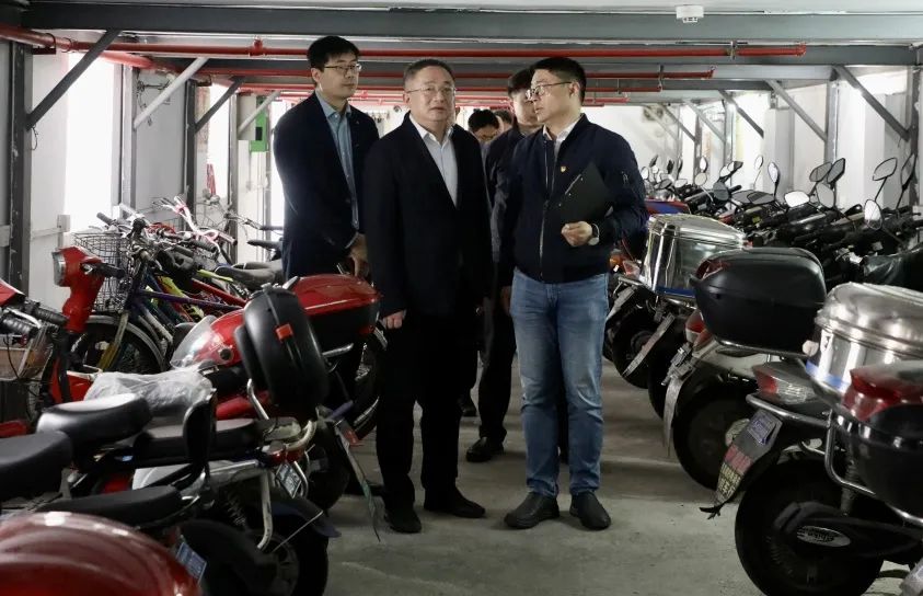 区领导一行先后到太阳广场,新虹桥绿景苑,虹储小区,武夷路491弄、418弄,长宁支路328弄、279弄等,实地检查了电动自行车停放点、架空层整治项目、充电设施等,详细了解集中充电点的日常管理、应急管理措施等相关工作情况,并向相关工作人员、快递小哥询问关于电动自行车智能充电系统的使用情况。