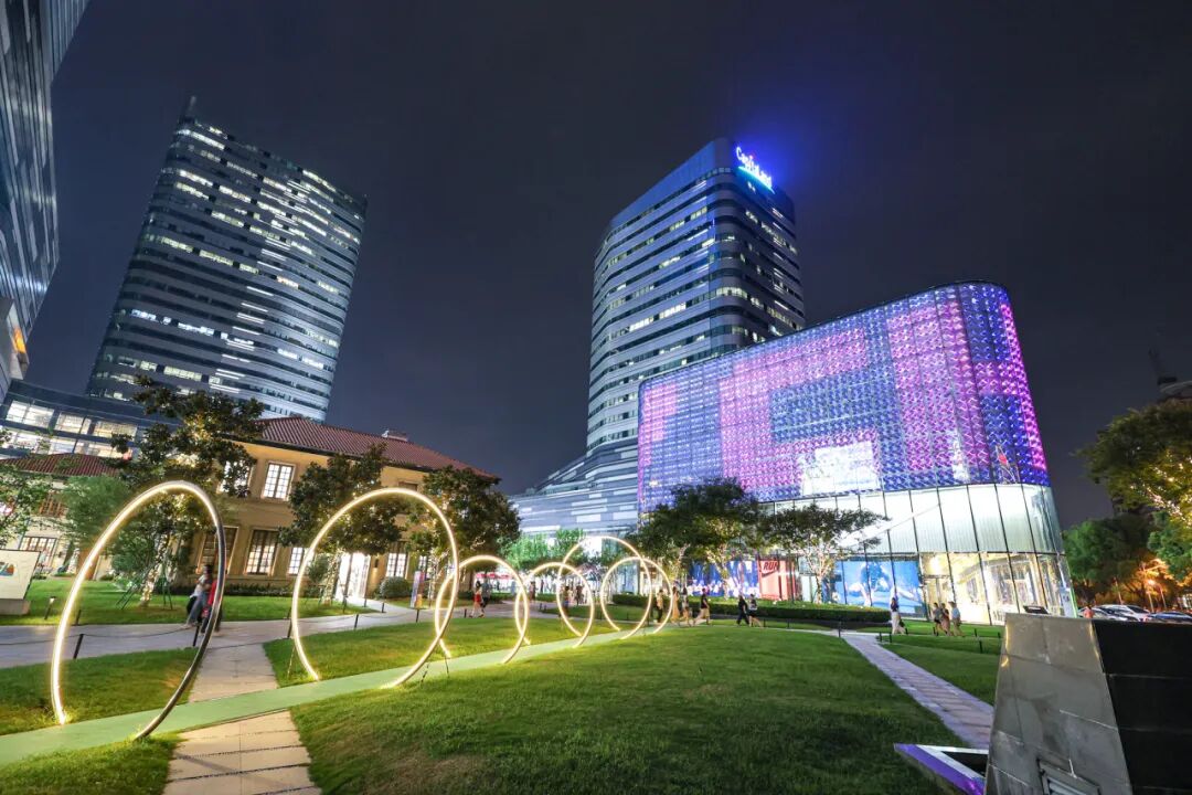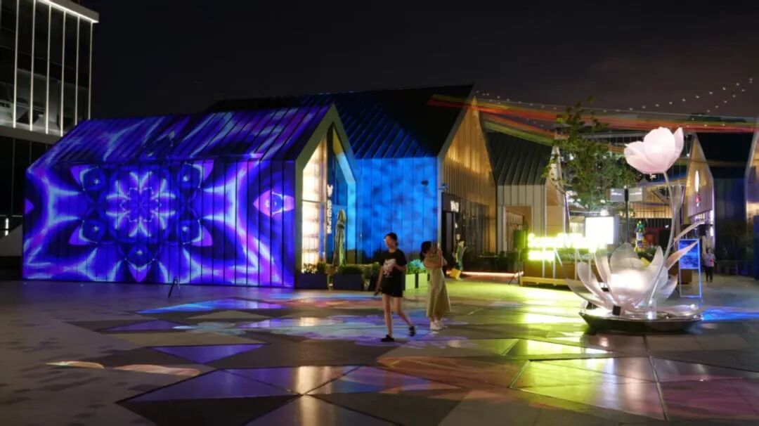 除两大主秀外,其余六处光影装置同样亮点纷呈,分别从生态科普、文商融合、人文关怀等维度,展现长宁的城市特色与生活温度。