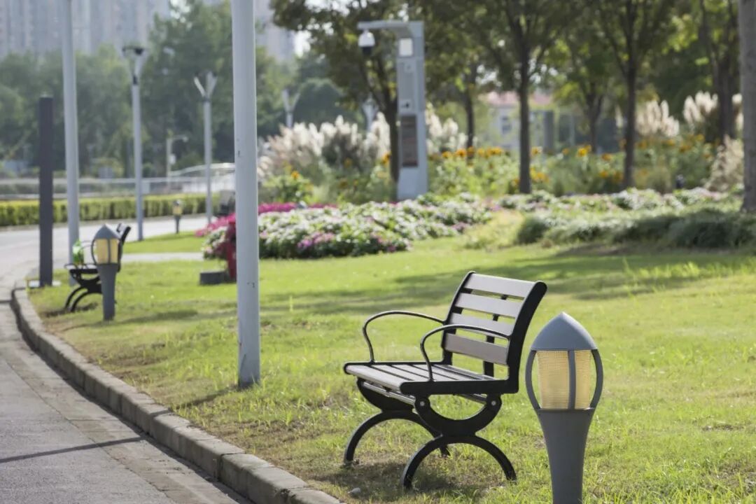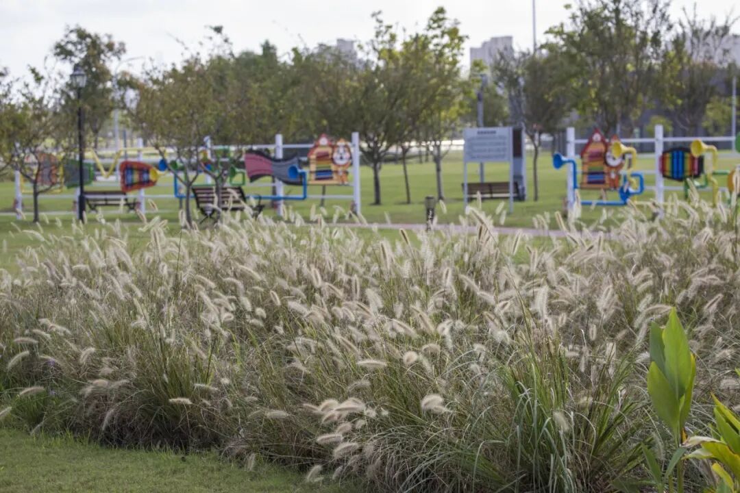 除了草坪、河景与自然景致这些“明星区域”,公园的细节升级也处处藏着贴心。道路开裂修好了、老化灯光换新了、破损座椅和垃圾桶全换了,游园舒适度直线上升;公厕里新增的母婴室,给带娃家庭留出了私密安全的护理空间;融入音乐元素的儿童友好游乐设施,更是让孩子玩得开心、家长看得放心,亲子互动氛围拉满,不少家长带着孩子在游乐区玩耍后,还会沿着河边步道散步,欣赏夕阳下的芦苇与河景。