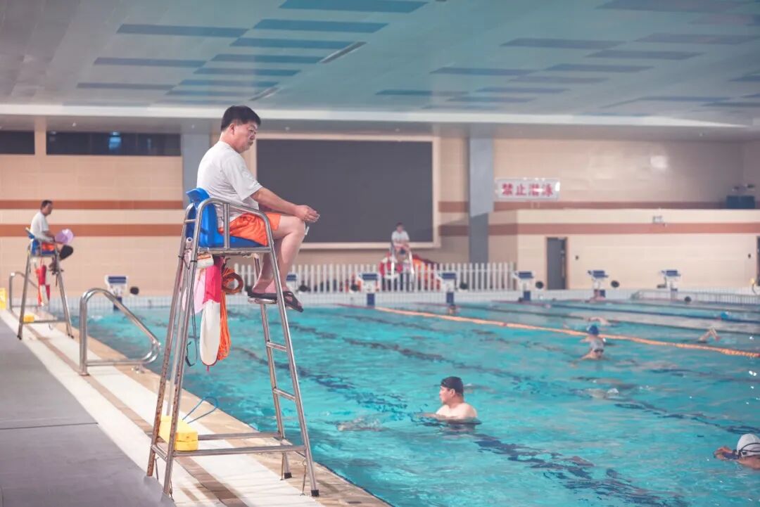 若听到哨声,那便是救生员正在发出提醒。游泳池执行救生员“六岗一巡”的标准,日常有六个救生员坐镇。除了保障安全外,对于在泳道内横向游动等影响整体游泳体验的行为,救生员也会及时进行管理。