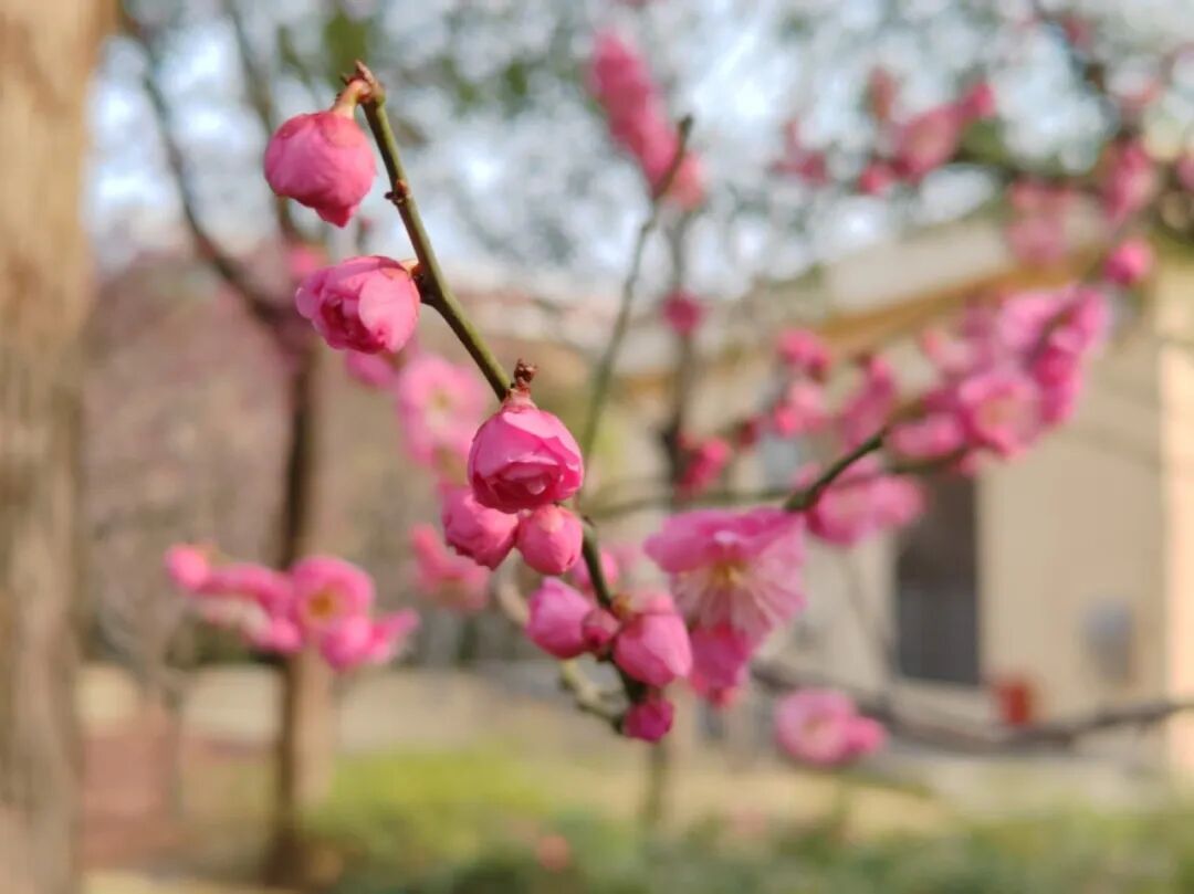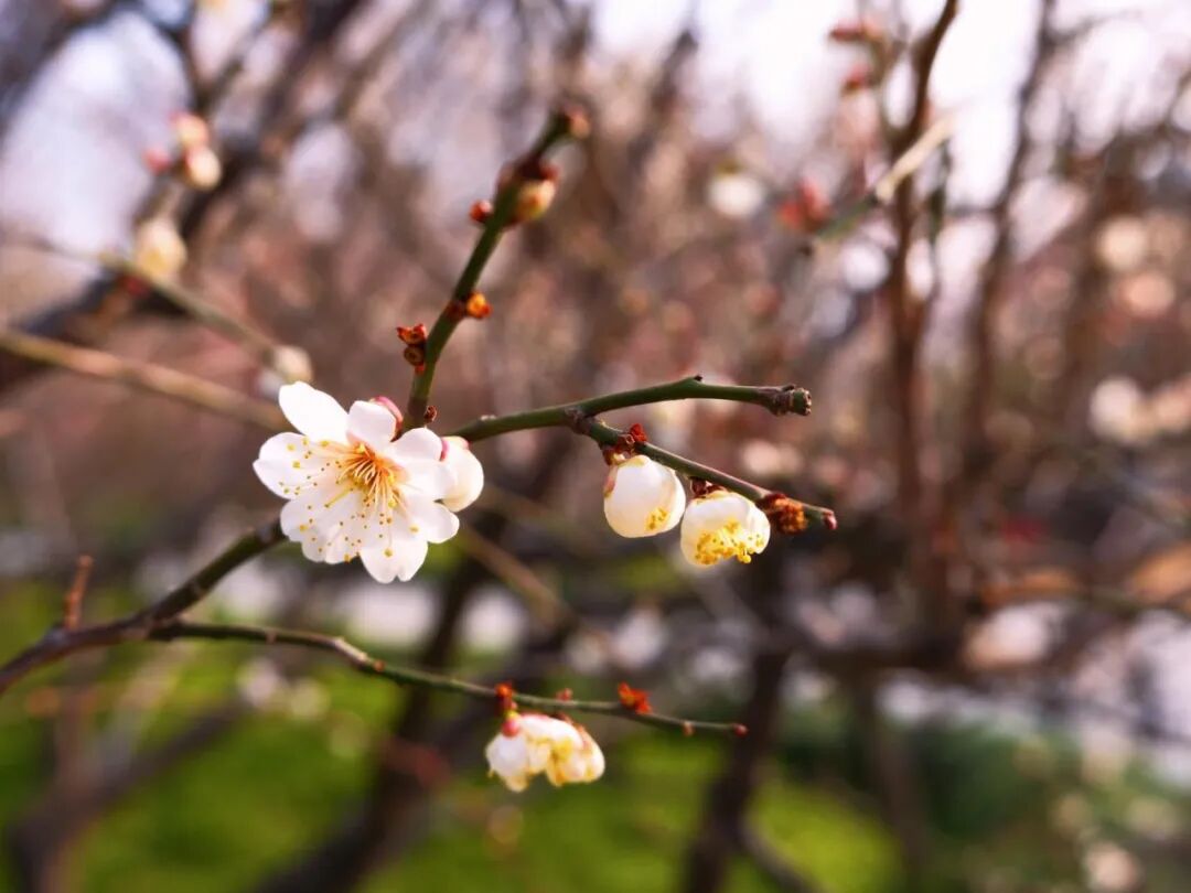 立春节气将至,报春梅花如约绽放。长宁公园里的梅枝,已悄悄染上点点胭脂,为城市捎来第一封春信。