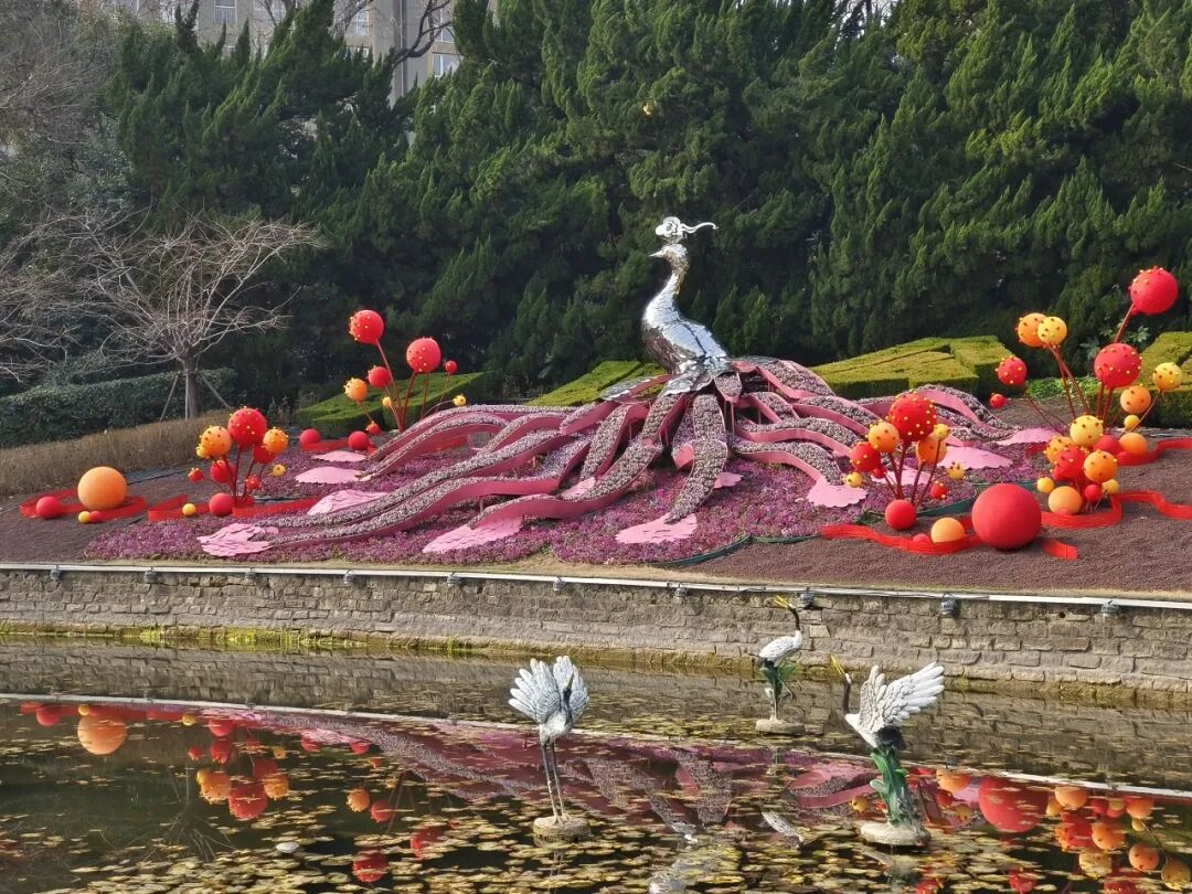 走进中山公园,1号门入口处红黄灯笼高挂,与竞相绽放的时令花卉相映生辉。今年,中山公园特别打造了以骏马为主题的新春花艺装置,马姿矫健、花簇缤纷,引得游客纷纷驻足留影。园内原有的孔雀装置也“换新颜”,与周边新蕊共同构成“雀尾华彩、新蕊吐芳”的生动画面。