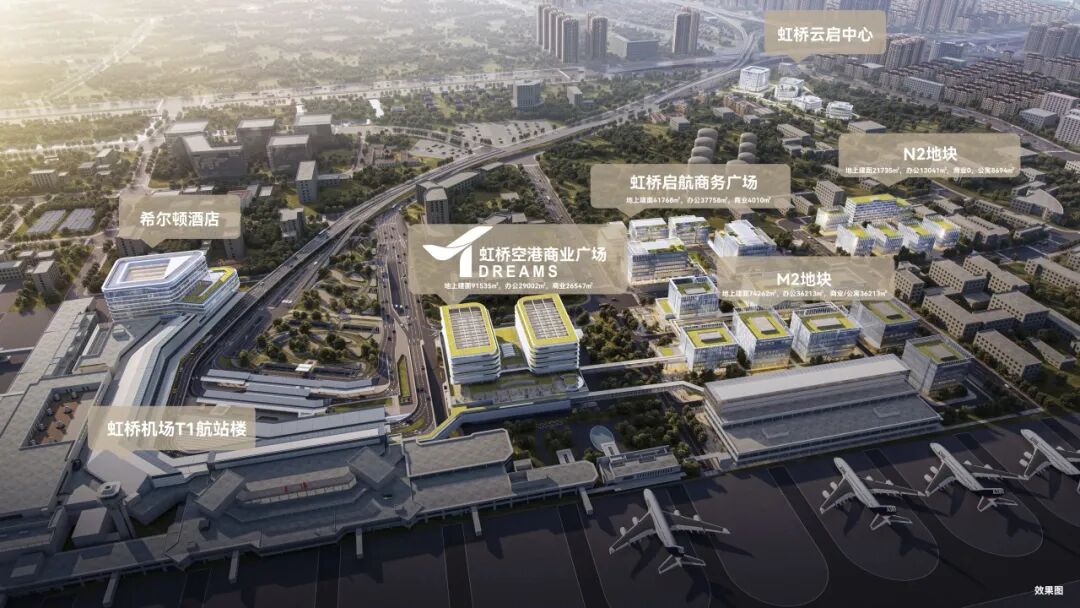 长宁区东虹桥片区项目示意图(虹桥空港商业广场、虹桥启航商务广场、M2地块、N2地块、虹桥云启中心)