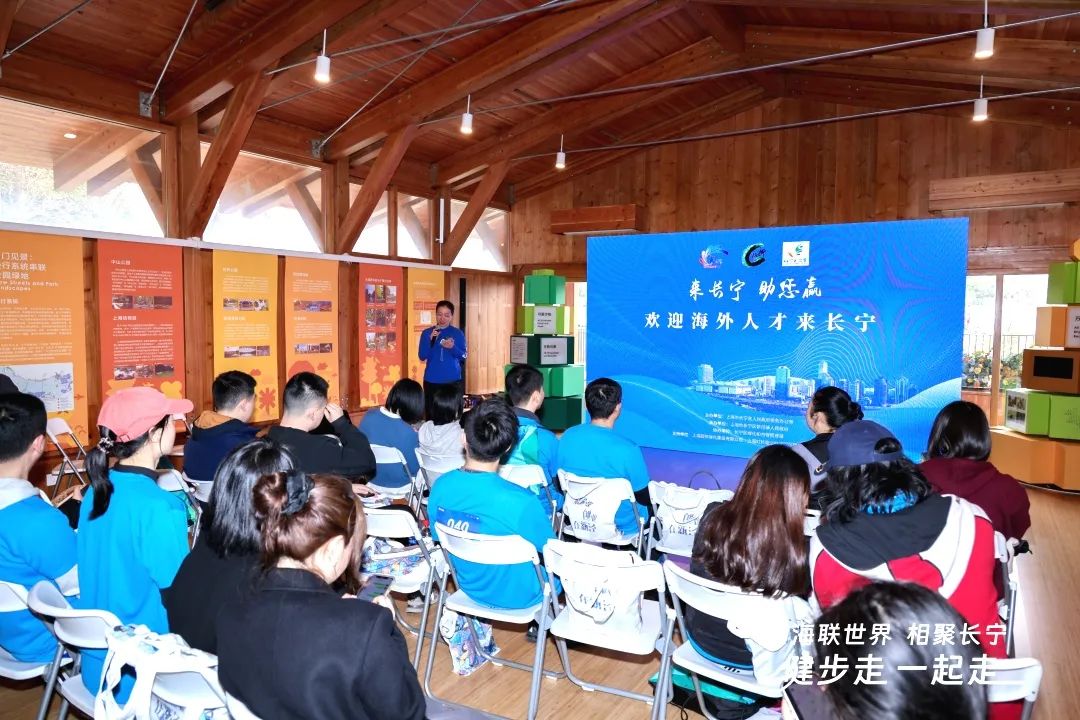 “长宁作为一个充满活力和机遇的地方,非常欢迎海外人才来此就业和居住……”在活动终点外环绿道3号驿站,区人社局、新泾镇相关负责人为留学生们介绍了长宁的商业创业环境和重点发展产业,并提供了咨询讲解。
