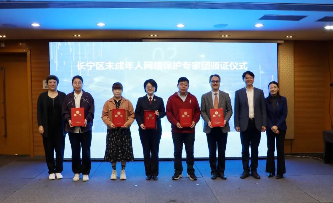 活动为5位来自社科、大学、法检、律师界相关代表颁发长宁区未成年网络保护专家证书。接下来,活动将邀请专家团成员积极参与“沪小信”普法宣传校园行以及《未成年人网络保护条例》普法宣传进机关、进企业、进学校、进社区、进楼宇、进网络活动。