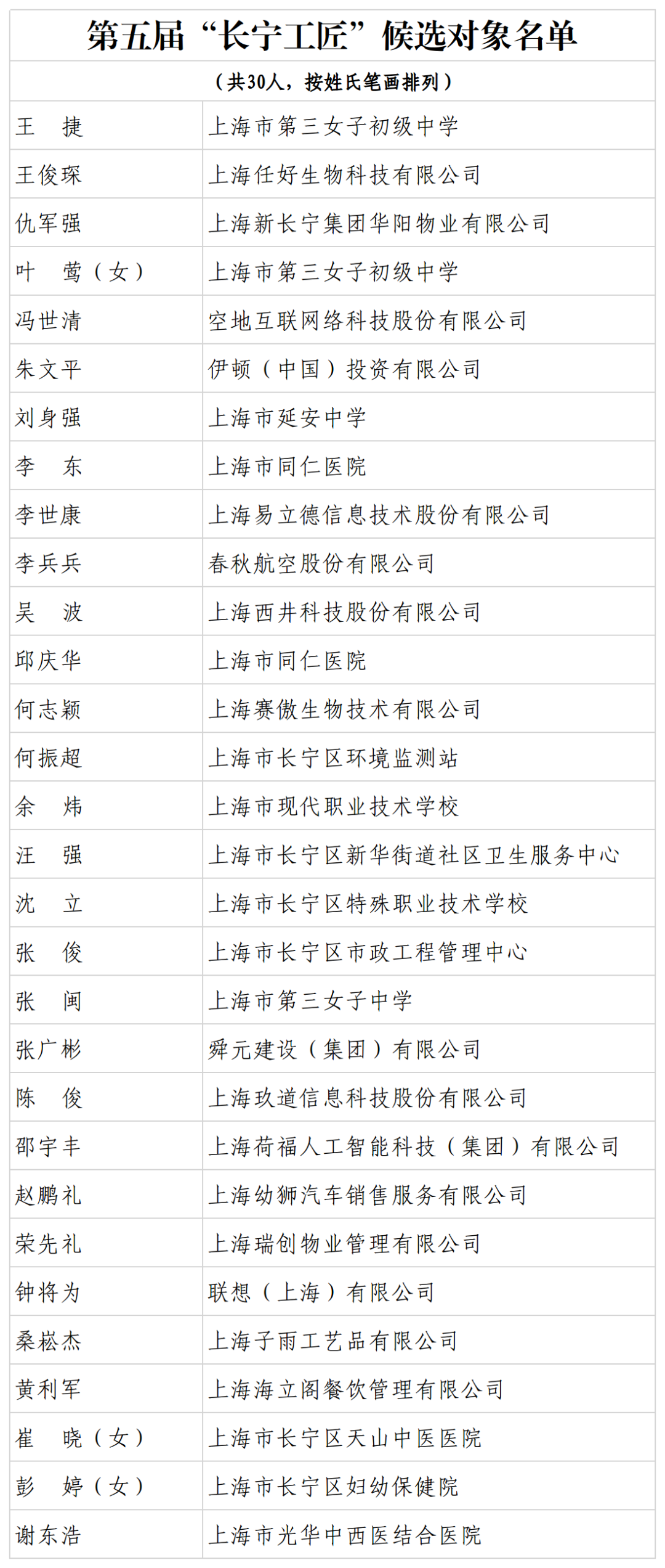 第五届“长宁工匠”候选对象公示 发布时间:2024-04-17