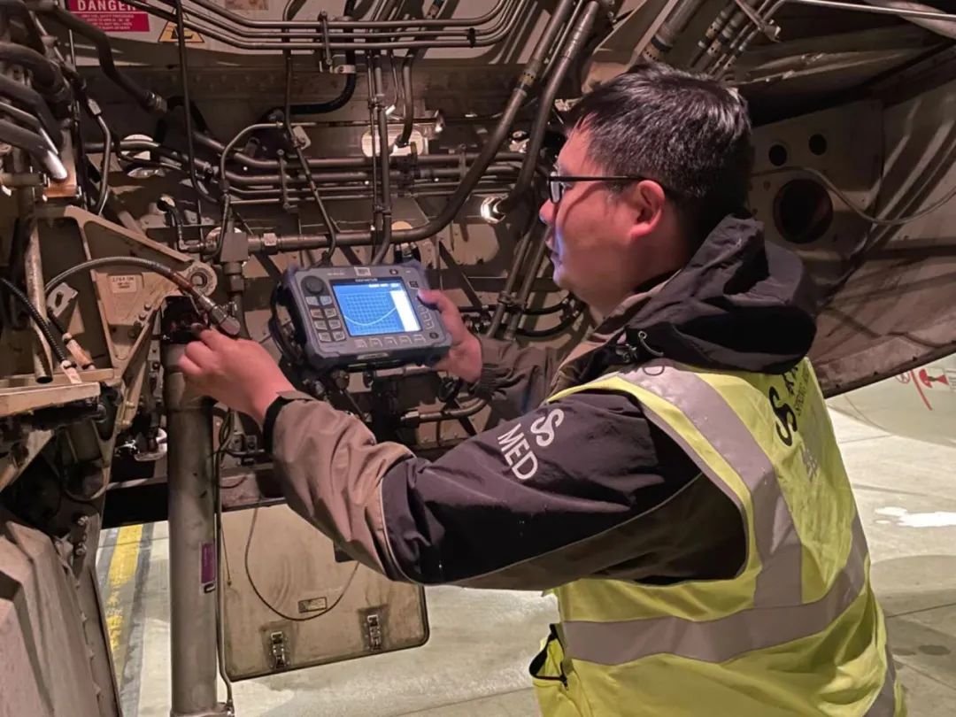 作为“飞机的体检和外科医生”,马伟军的职责就是通过超声波、涡流以及渗透、磁粉等检测方法对飞机的零部件进行特殊检测以及对飞机发动机进行孔探检验,提前发现飞机可能存在的问题并及时解决,从而保证飞机的飞行安全。