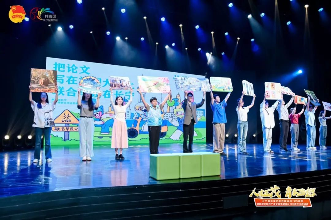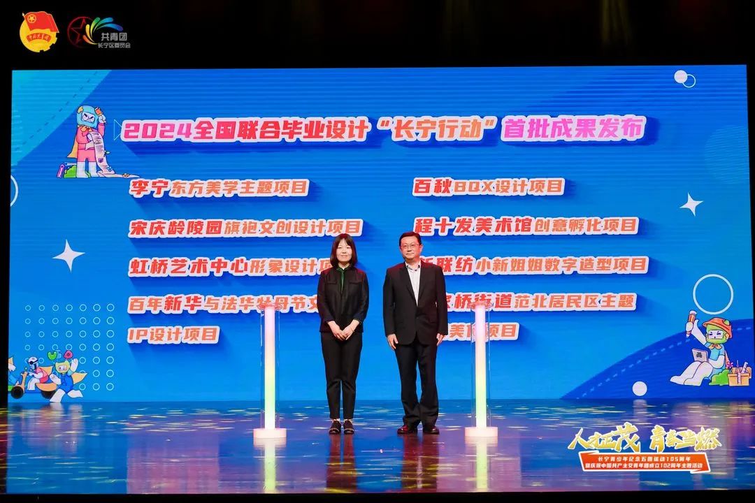 在主题展演环节,东华大学的同学们带来了情景剧微团课《联合毕设在长宁》,讲述了大学生在联合毕设“长宁行动”答辩会、招聘会、发布会“三会联动”的人才引留模式中找到人生方向的故事。2023年,全国联合毕业设计成功落地长宁,成为了青年人才绽放才华的舞台。活动上还发布了2024全国联合毕业设计“长宁行动”首批成果。