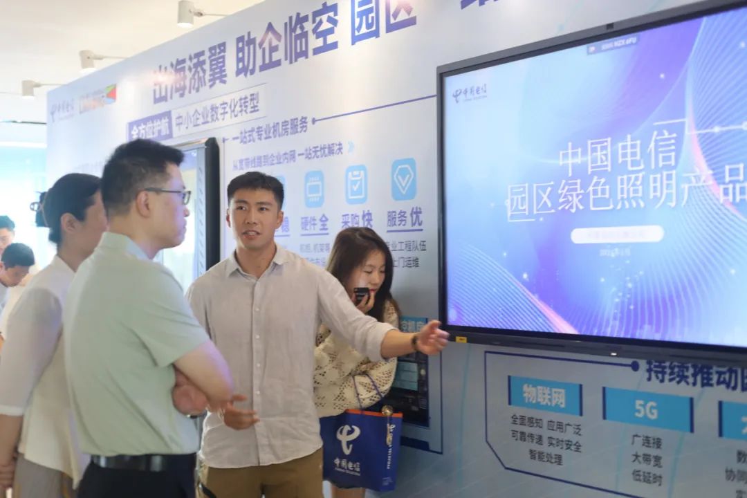 活动的尾声,嘉宾一同参观考察了“智云上海”演示区,“出海添翼·助企临空”园区一站式数字化解决方案、企业组网、量子安全通信、数字出海服务平台等技术方案在现场集中展示。