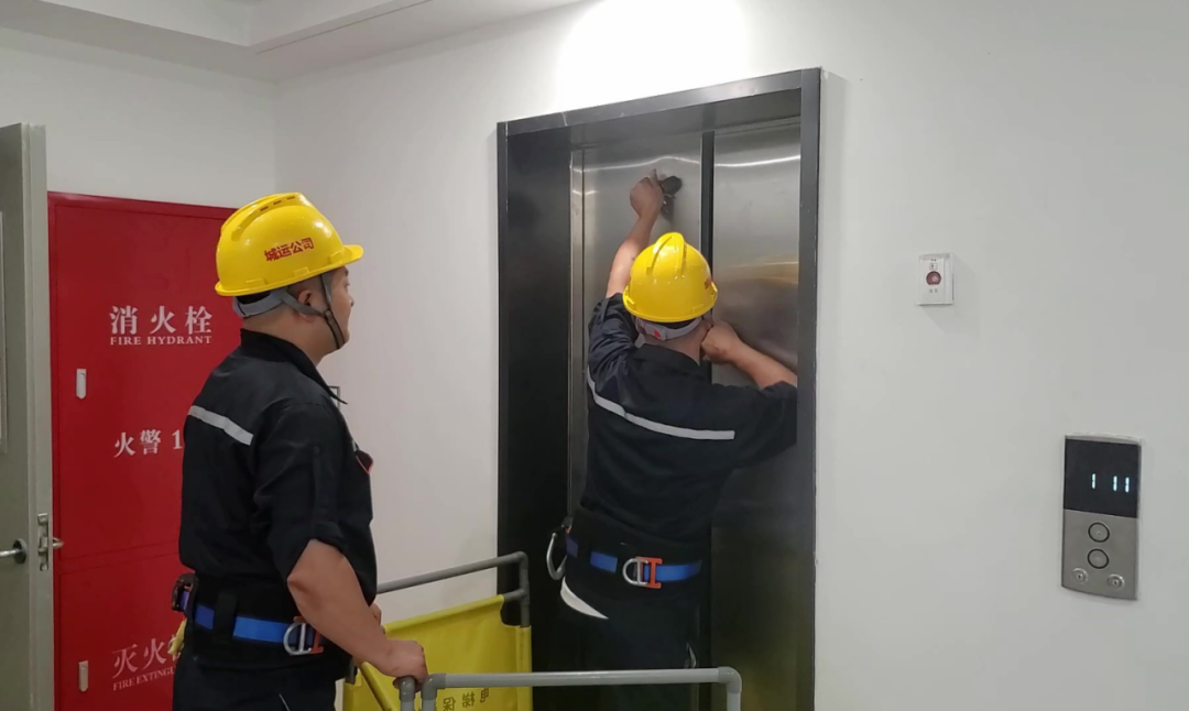 极端天气下,虹桥人才公寓某号住宅楼内,一台电梯紧急制停发生困人事件。接报后,总控室立即通知电梯维保人员。15分钟后,维修人员赶到现场并立即实施救援。在将被困居民救出后,维修人员仔细查看电梯楼层位置,了解电梯故障发生情况,排查紧急制停原因,经过及时调整电梯门刀、门球的间隙,反复调试后,最终确保该部电梯恢复正常使用。