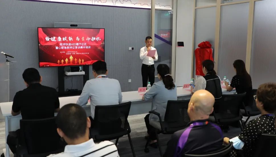 7月30日,长宁企业联邦快递(中国)有限公司上海分公司迎来了一份特别的礼物,一台自动体外除颤器(AED)被送到了公司的楼宇内,与之相随的,还有一块健康服务点的铭牌以及一堂面向公司职工开展的心脏急救持证复训集中培训。