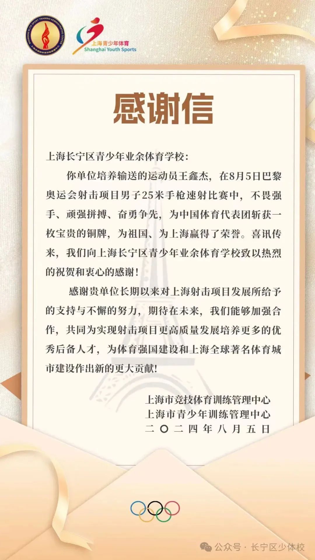 长宁健儿奥运奖牌+1! 发布时间:2024-08-05