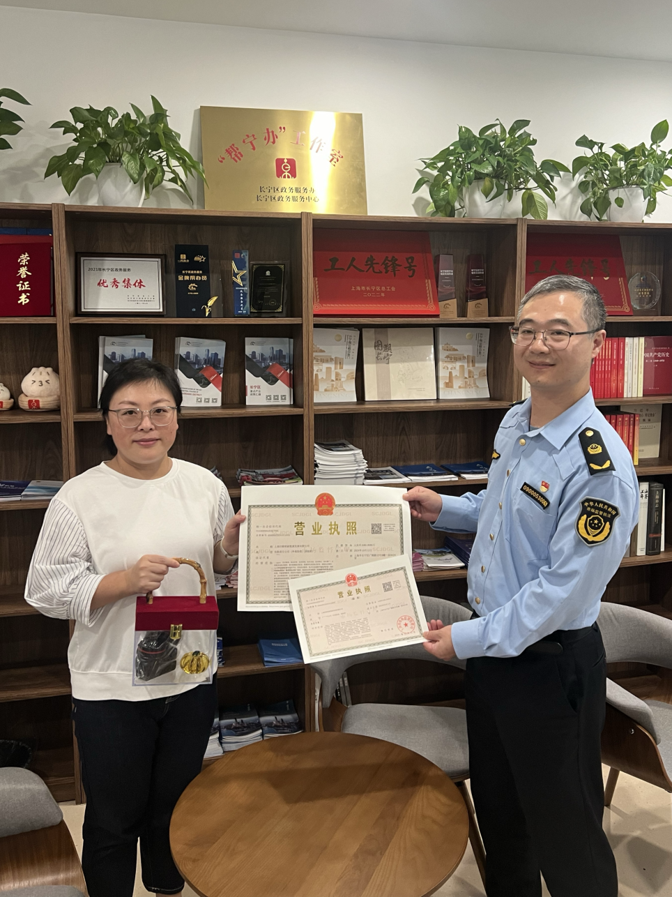 近日,上海伏勒密新能源发展有限公司负责人拿到新鲜出炉的营业执照,现场对长宁“帮宁办”工作室高效贴心的服务赞叹不已,同时也对业务办理过程中各相关部门给予的帮助与支持表示感谢。