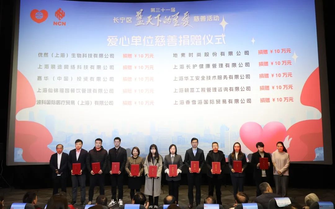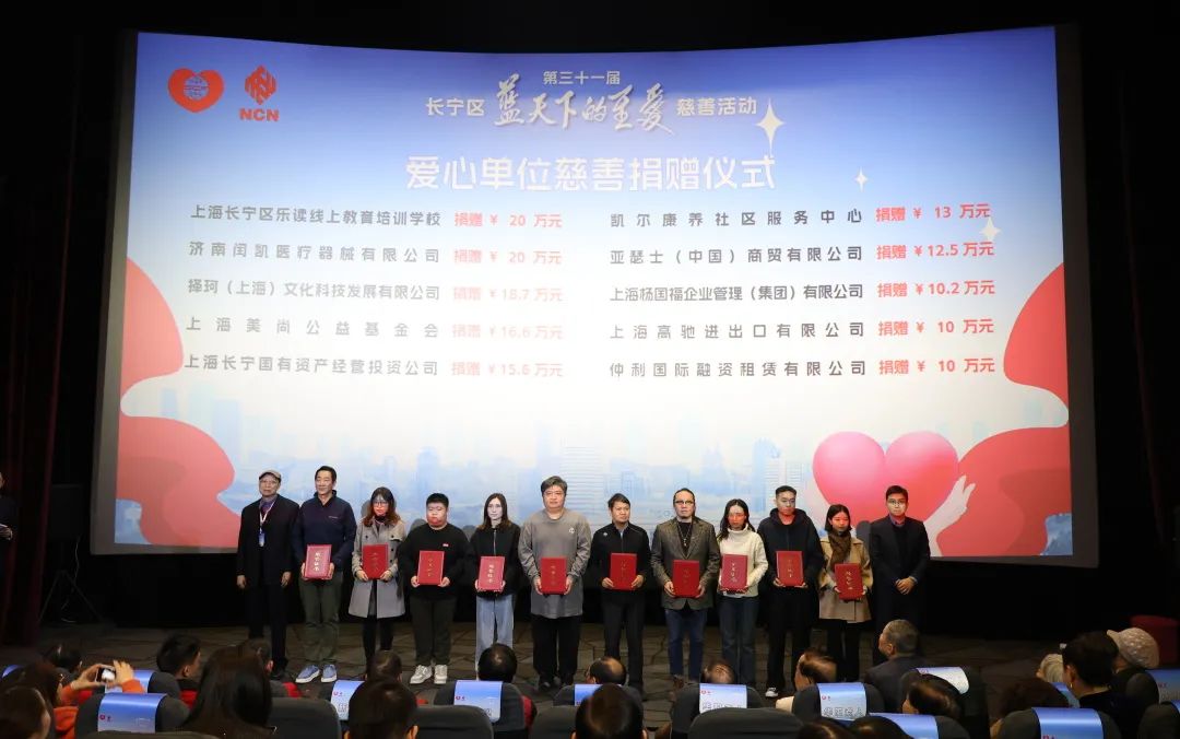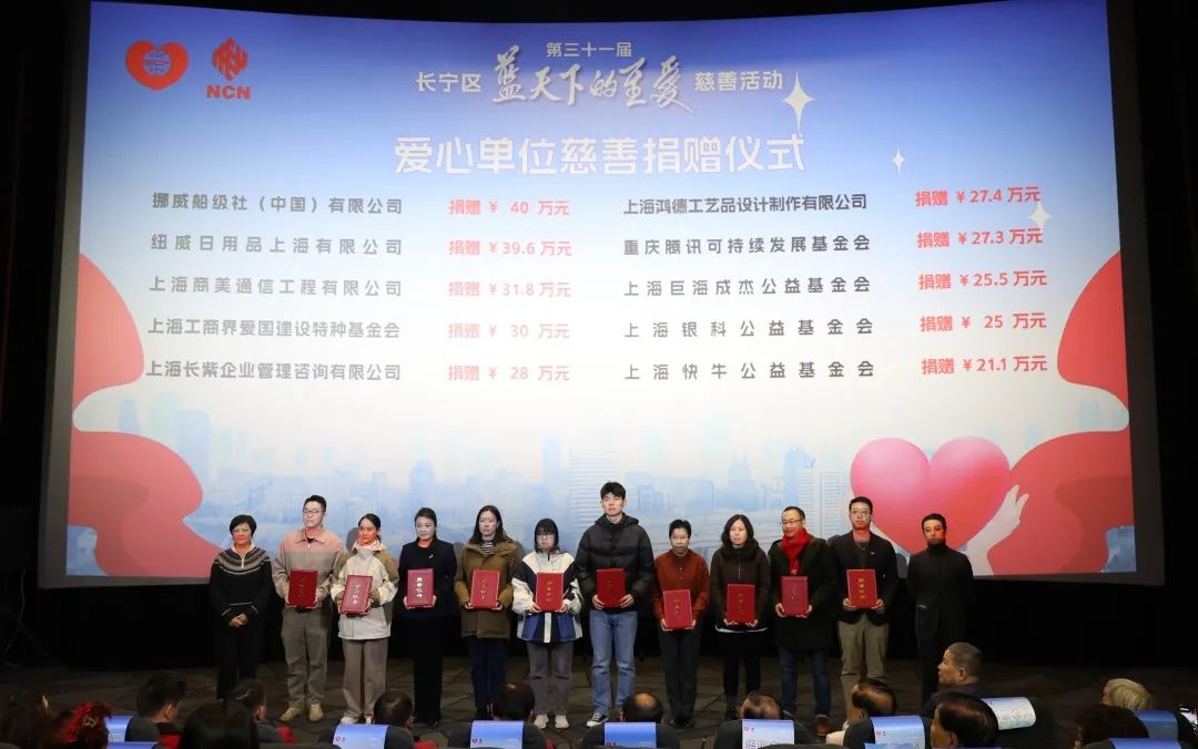 随后,长宁区第三十一届“蓝天下的至爱”慈善捐赠仪式举行,40家长宁区爱心单位共向长宁代表处捐赠1475.6万元,并获颁捐赠荣誉证书。