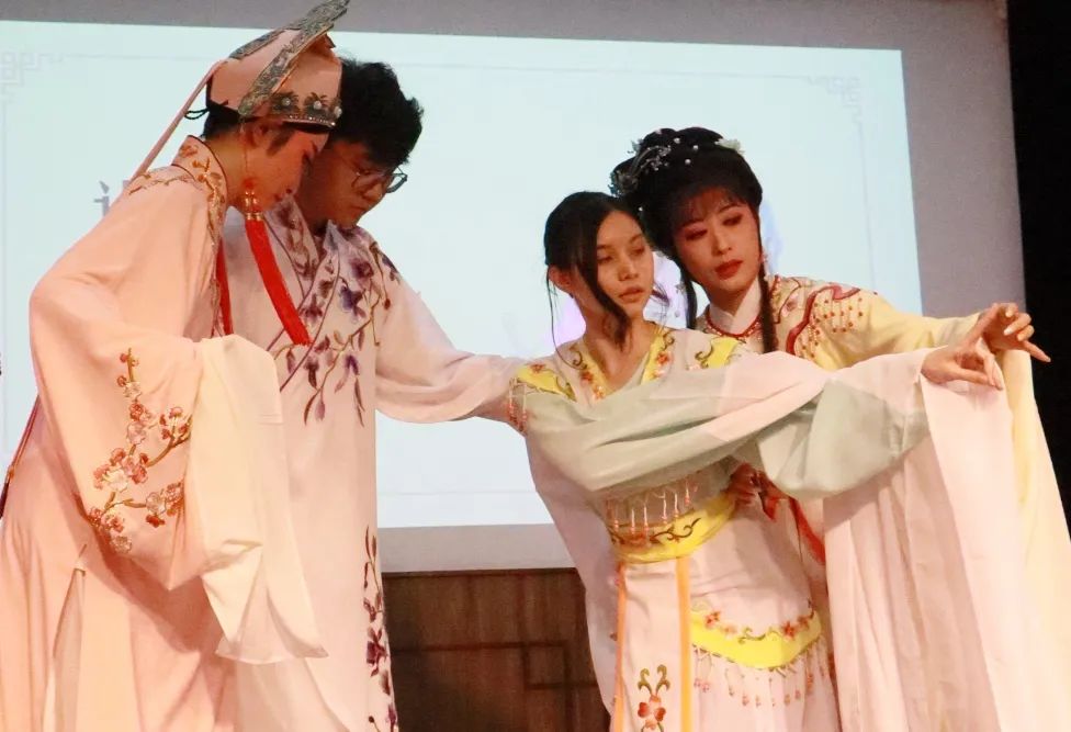 华丽的凤冠霞帔、精致的水袖长裙……越剧服饰体验环节让大家兴奋不已。在专业老师的指导下,同学们纷纷穿上戏服,学习基本的台步与手势,感受越剧服饰与表演的魅力。“穿上这身戏服,感觉自己瞬间融入了角色,更能体会到越剧中蕴含的情感与文化内涵。”一位同学在体验后难掩内心激动,分享了自己的感受。