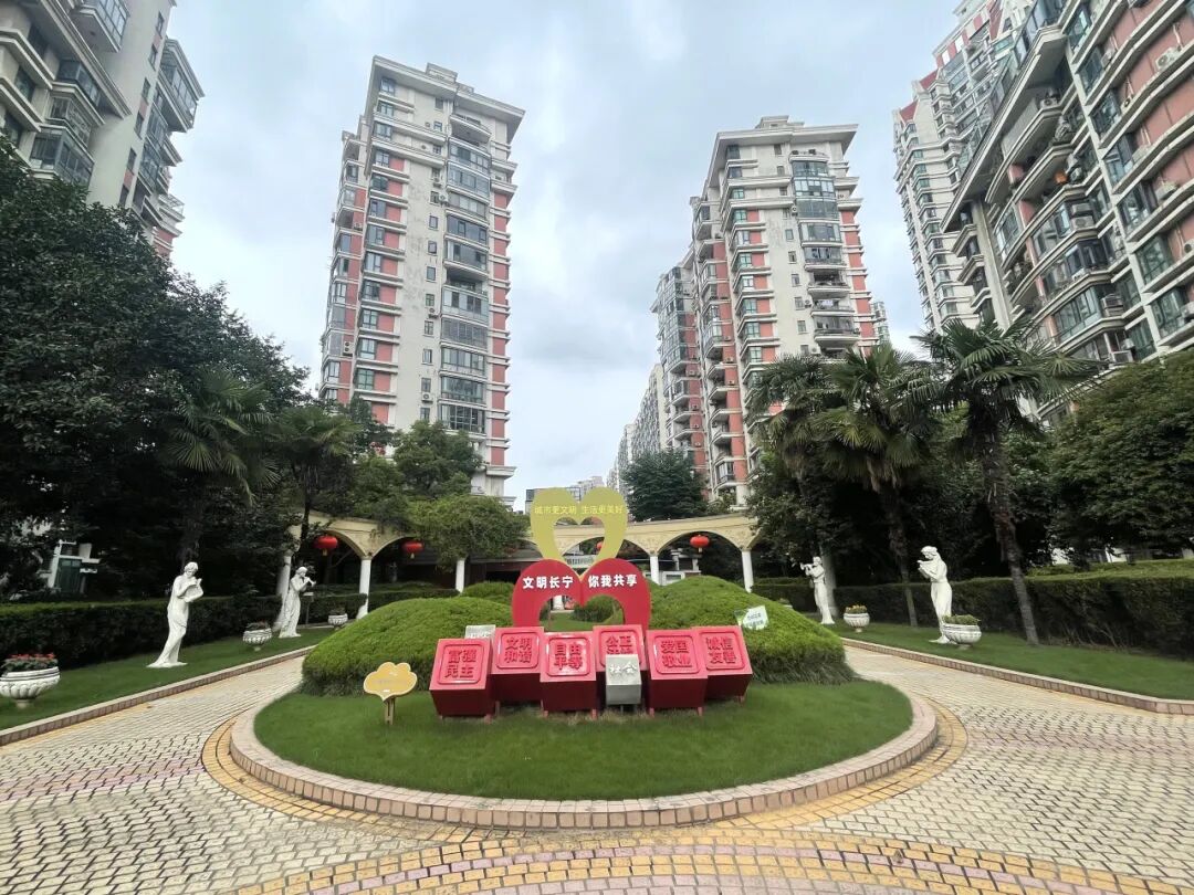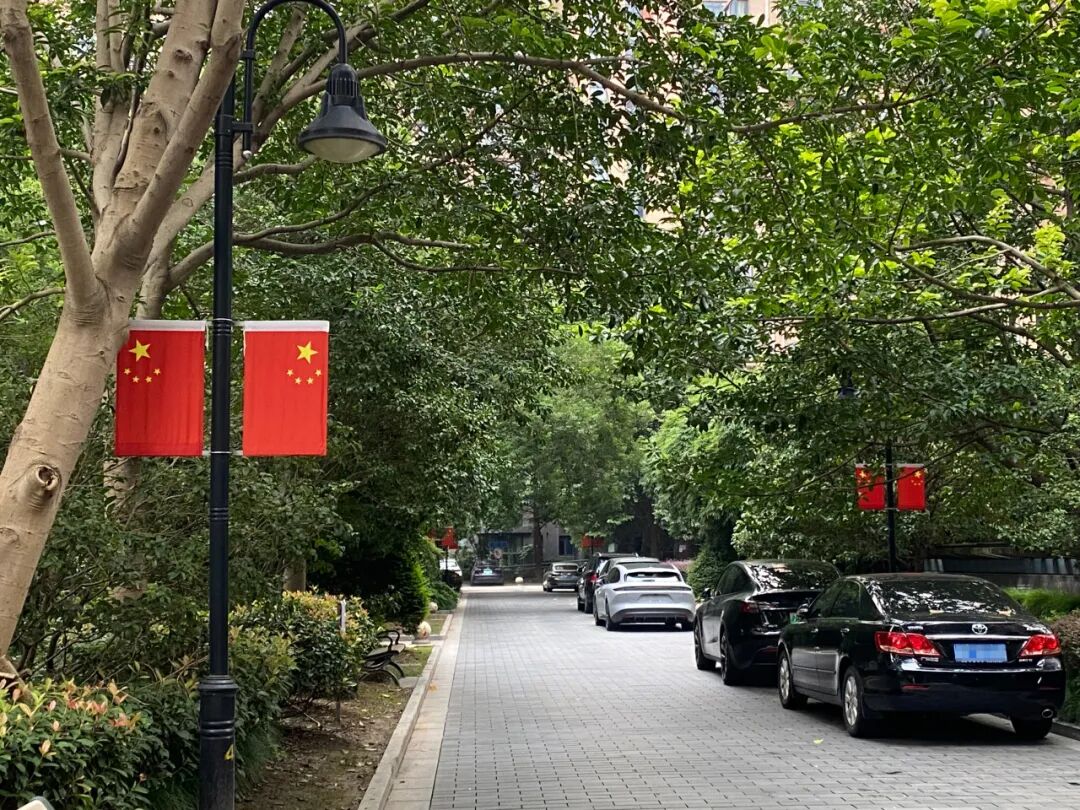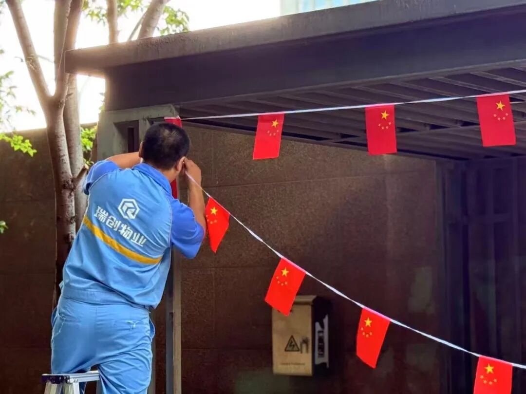 社区里,新长宁集团旗下各物业公司以创意、细致的服务为小区披上节日盛装,将家国情怀融入一砖一瓦、一草一木,让居民在欢快的氛围中感受节日温度。