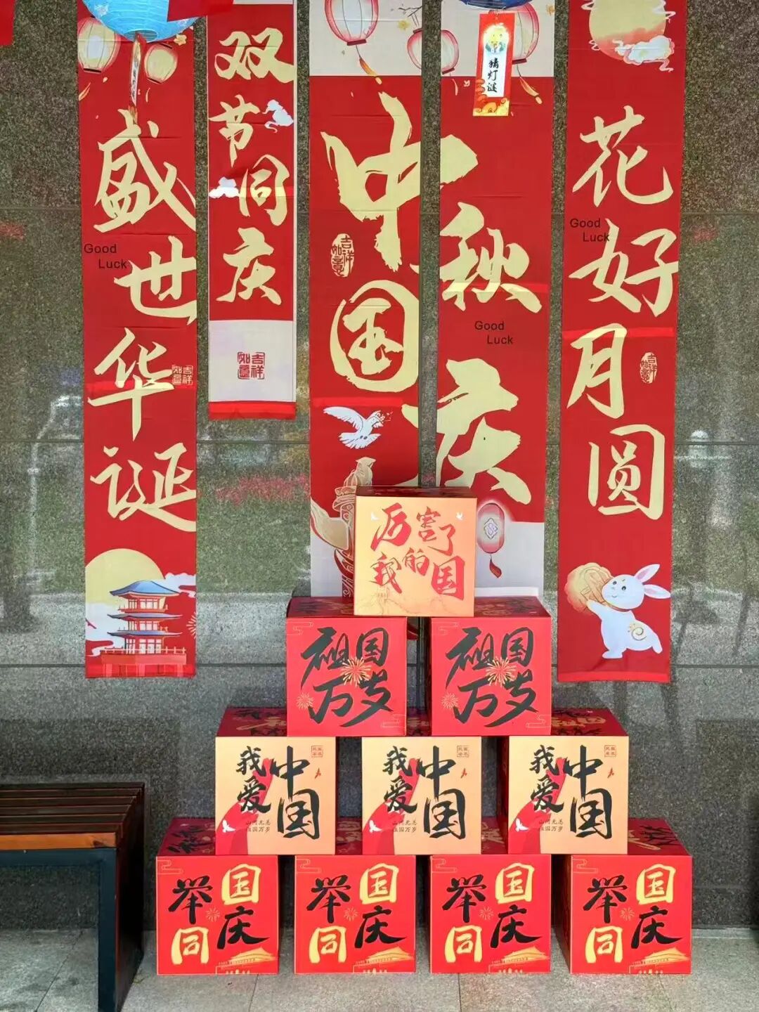 尚品华庭小区内,瑞创物业以“小而美”的巧思传递大情怀。草坪上,数百只红色风车随风旋转;屋檐下,串串小国旗与建筑外立面交相辉映;公共区域的中秋灯笼阵尤为亮眼,灯笼上手写的诗词与灯谜卡片,既承载着“月圆人团圆”的传统意蕴,又以互动形式激发居民参与热情。