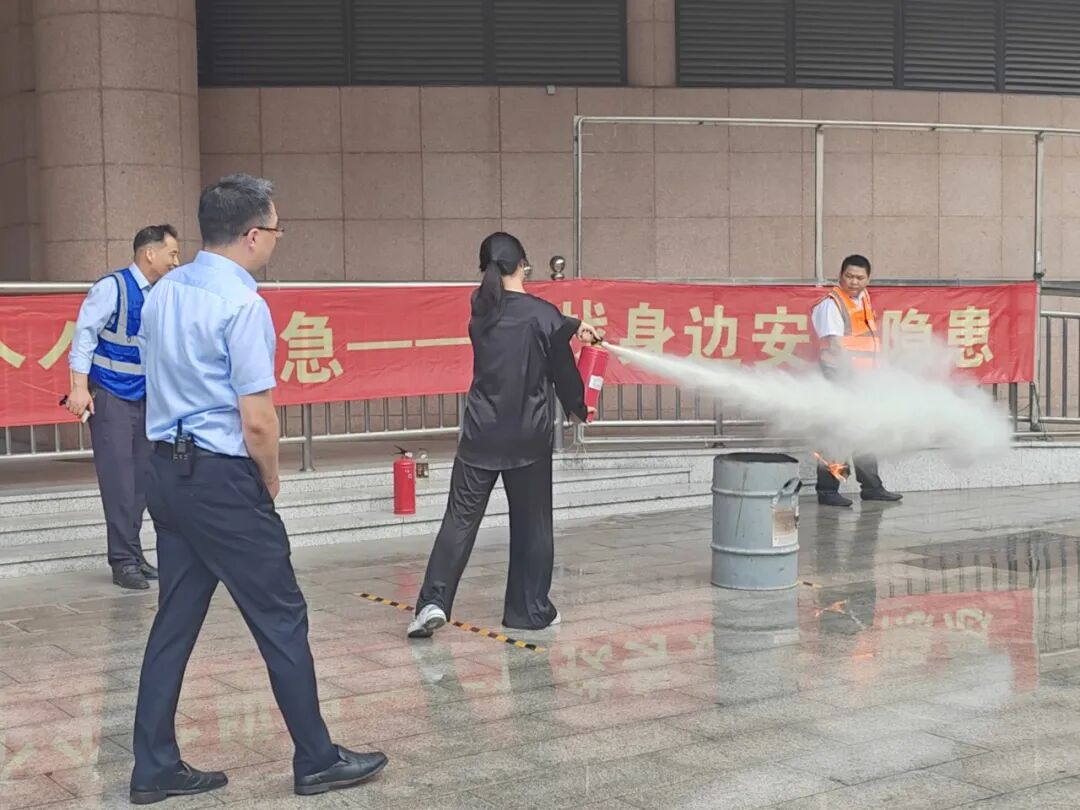 “提、拔、握、压四步,就是正确使用灭火器的口诀。”“在灭火时,要对准火焰根部喷射。”……体验实操的居民和工作人员在专业指导下认真练习,增强安全意识,锻炼相关技能,通过演练全面提升了突发火灾先期扑救能力、救援协同能力及应急逃生能力。
