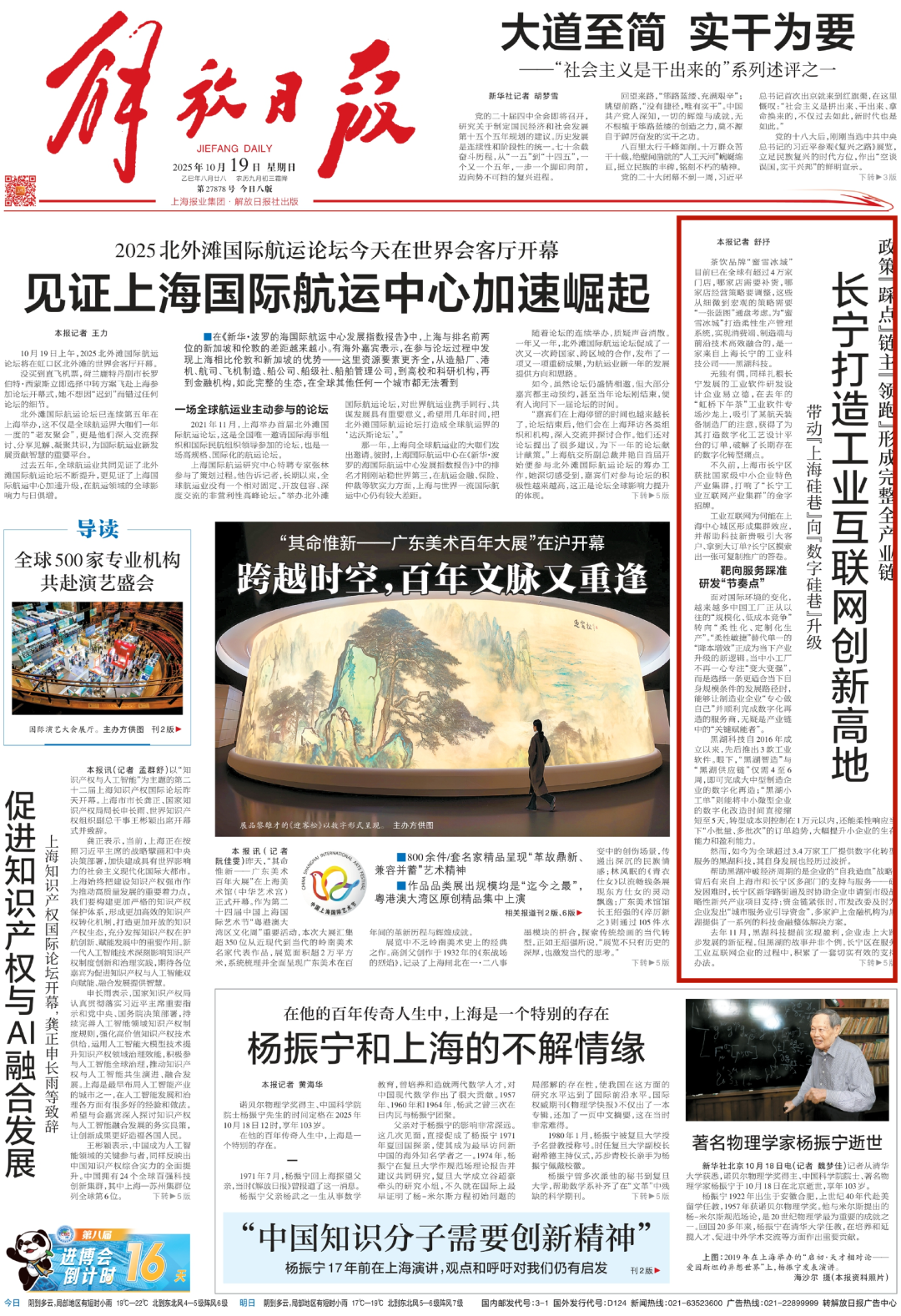 解放日报头版报道:长宁打造工业互联网创新高地 发布时间:2025-10-19 信息来源:上海长宁