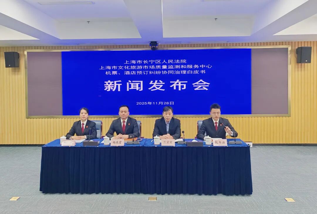 11月28日,区人民法院、上海市文化旅游市场质量监测和服务中心联合举行新闻发布会,发布《机票、酒店预订纠纷协同治理白皮书(2023年10月-2025年9月)》(以下简称“白皮书”)、《机票、酒店预订纠纷调解指导手册》,并通报5起典型案例。