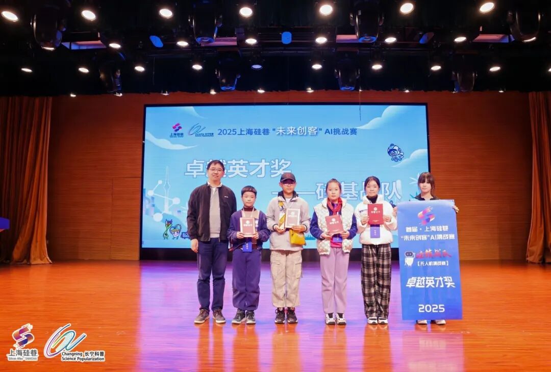 经过一天紧张激烈的比拼,赛事共决出卓越英才奖2支队伍,一等奖9支队伍、专项奖6支队伍、二等奖、三等奖若干,尤为引人注目的是两项“卓越英才奖”的诞生:“硅族战队” 由中国科学院上海硅酸盐研究所授予无人机项目淘汰赛最终获奖团队——北新泾第三小学北三5队;“硅基战队” 由上海微系统与信息技术研究所授予机器人项目积分最高团队——北新泾第二小学幸运树队。这两支“王牌战队”将获得走进中国科学院科研院所开展一日研学的机会,与博士研究员面对面交流,近距离感受国家前沿科技脉动,真正实现“从赛场走向实验室”的跨越。