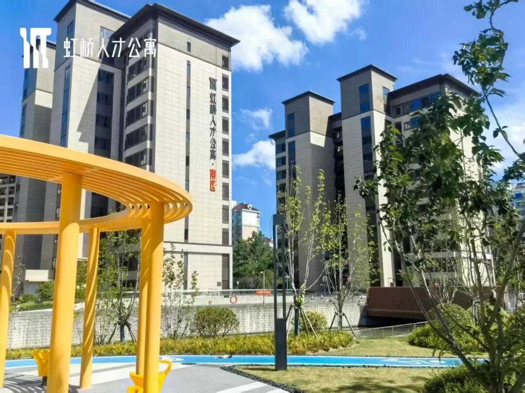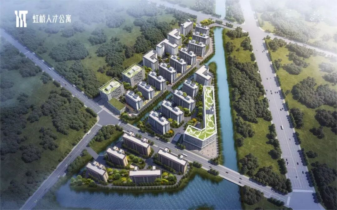 虹桥人才公寓坐落于新泾镇广虹路77弄、98弄,东邻长宁区公共慢行步道与外环西河,北至天山西路,南临周家浜。作为中心城区最大的保障性租赁住房项目,虹桥人才公寓地理位置、自然生态环境优越,靠近2号线淞虹路地铁站,社区提供贴心班车服务,直达东虹桥中心和淞虹路地铁站,极大提升了青年人才们的出行便捷与舒适性。