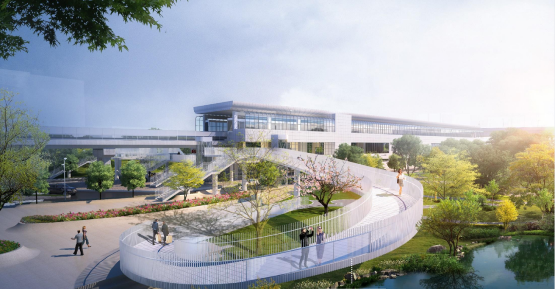 项目建成投用后,将显著优化区域的功能架构与空间布局。在交通层面,实现东西向贯通,完善步行交通体系,成为连接道路两侧的“活力纽带”;在生态层面,亲水融绿,串联公园景观资源,打造自然与人文深度融合的“生态廊道”;在形象层面,引城入林,提升站点品质,成为展现区域风貌特色的“形象平台”。