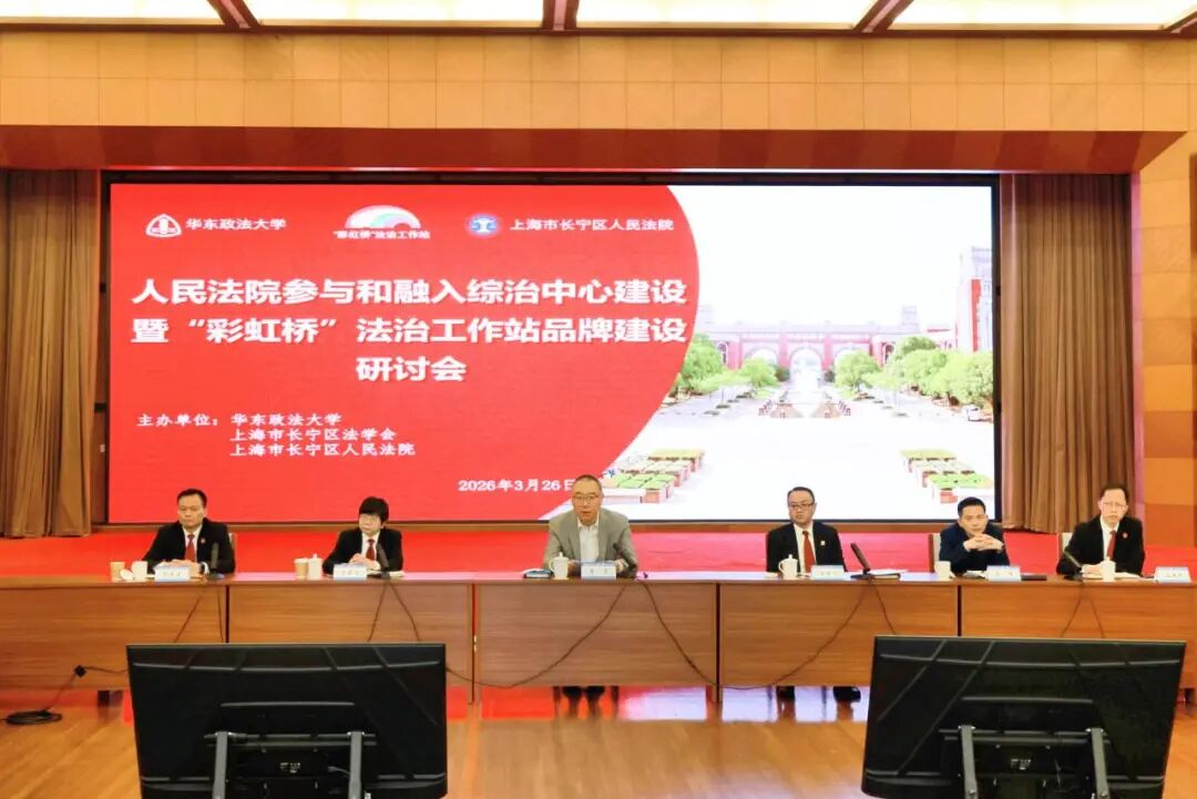 为进一步推动司法资源与社会治理深度融合,强化“彩虹桥”法治工作站品牌赋能,3月26日下午,由华东政法大学、长宁区法学会、长宁区人民法院主办的“人民法院参与和融入综治中心建设暨 ‘彩虹桥’法治工作站品牌建设”研讨会在华东政法大学举行。