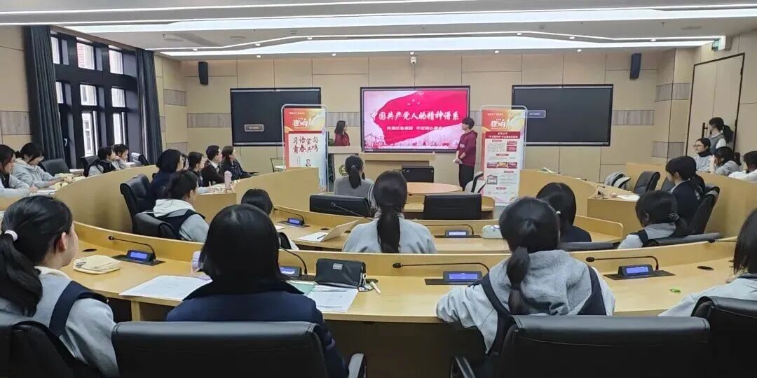 在市三女中,东华大学“学习进行时”学生理论宣讲团以朋辈视角,为“00后”的学生们带来了一场“中国共产党人精神谱系”主题宣讲。东华学子们结合校史,在宣讲中用一个个鲜活的故事案例,串联起抗战精神、伟大建党精神、工匠精神、载人航天精神、脱贫攻坚精神与劳模精神。从抗战烽火中的东华历史,到“国之重器”背后的东华力量,再到扶贫攻坚中的青春担当……宣讲团把一个个精神坐标“翻译”成身边故事。“为冬奥火炬编织碳纤维‘战袍’,为航天员打造专用服装,为C919攻关高性能复合材料……这些成就都藏着我们东华人的智慧。”东华宣讲学生的激昂声音,赢得阵阵掌声。在互动环节,有市三学生们提问“如何把精神转化为可实践的行动?”,宣讲团成员回答得朴素有力:“以史为鉴,不断学习,从小事做起,鼓励大家把个人理想与国家命运结合起来!”