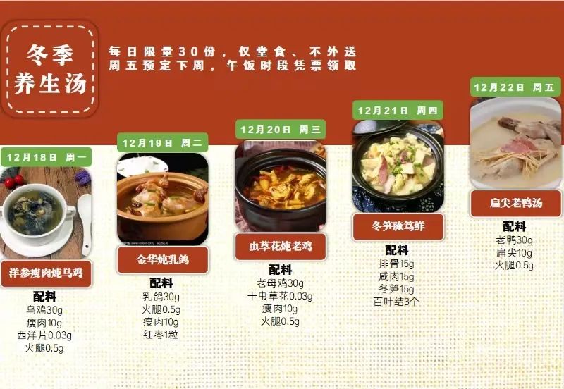 “速冻”模式下,保温送餐车从各个社区长者食堂和综合为老服务中心出发,为孤老、独居、残疾、行动不便等重点特殊困难老人提供送餐上门服务,保障他们在极端低温天气能吃得满足、暖胃更暖心。老年人特供热饮、冬季时令菜、暖胃佳肴……各机构针对寒冷冬季定制冬日养生菜系,增加冬日靓汤及方便老人居家就餐的点心制品。