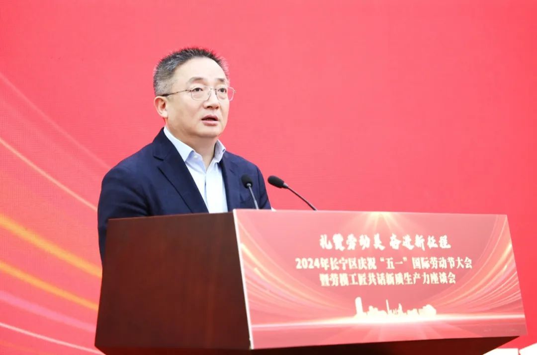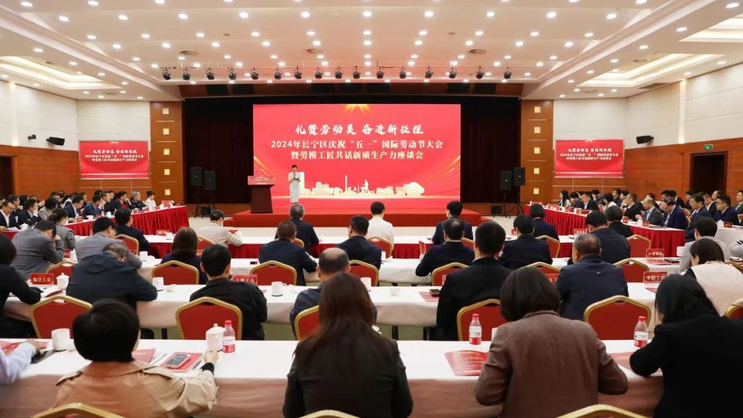 4月30日,“礼赞劳动者,奋进新征程”2024年长宁区庆祝“五一”国际劳动节大会暨劳模工匠共话新质生产力座谈会召开。