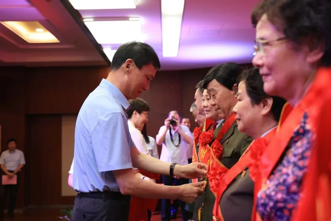 戴上熠熠生辉的纪念章,在鲜艳的大红花和印有“光荣在党50年”红绶带的映衬下,老同志们感到无比光荣、格外激动。有的老同志虽已耄耋之年,但依然精神矍铄、挺如松柏,展现出一名老军人、老党员的风骨,全场用热烈掌声向他们致以崇高的敬意。