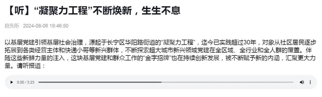 发源地的新实践丨长宁这项工作引起沪上各大媒体高度关注 发布时间:2024-08-08 信息来源:上海长宁