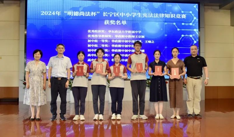 活动还展示了“清朗守护·为你而来”暑期未成年人网络环境整治专项行动成果;对2024年“明德尚法杯”长宁区中小学生宪法法律知识竞赛获奖者颁奖;华东政法大学副教授田相夏、普陀区人民检察院未检负责人徐丽春分别为现场的学生们授课。