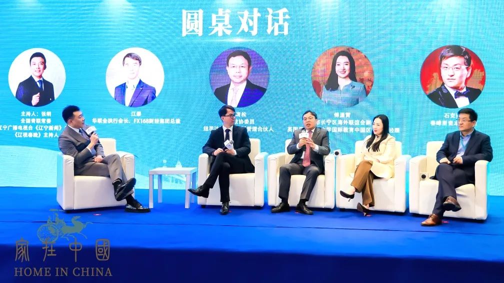 在圆桌对话环节,全国政协委员、纽思达律师事务所管理合伙人魏青松,华联会执行会长、FX168财经集团总裁江泰,上海市欧美同学会长宁分会会长、英国曼彻斯特大学国际教育中国区董事总经理傅潇霄,春峰里资本董事长石克卿,依据各自所在行业和海内外投资发展经验,围绕中资企业如何把握全球化机遇以及文化对经济发展的影响及推动作用分享观点。