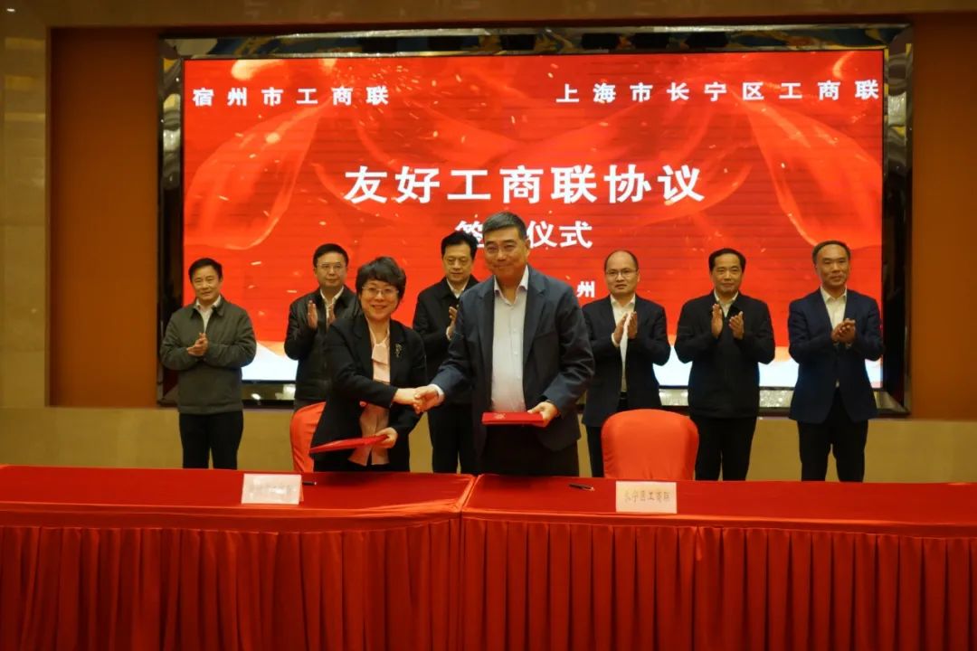座谈会上,长宁区工商联与宿州市工商联签订友好工商联协议;上海市同仁医院与宿州市萧县人民医院签订合作协议;上海市光华中西医结合医院与宿州市萧县中医院签订合作协议。
