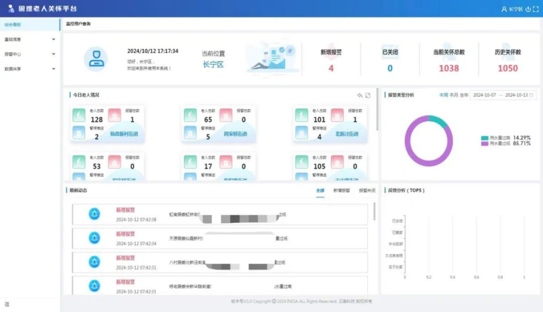 2023年,长宁区开展老年人智能水表安全监测服务试点工作,为全区533户独居老人开通智能水表监测服务。根据老人每天24小时内用水量监测情况,确定智能水表报警规则,用水量触发报警值后产生报警信息,然后AI语音外呼紧急联系人,若无法完成告警联系的,再由系统派单至居委,工作人员进行上门确认情况并结单,形成“发现-上报(预警)-处置(派单)-反馈”闭环,有效运用信息化手段为养老服务“赋能”,扩大了对独居老人的关爱服务覆盖面。