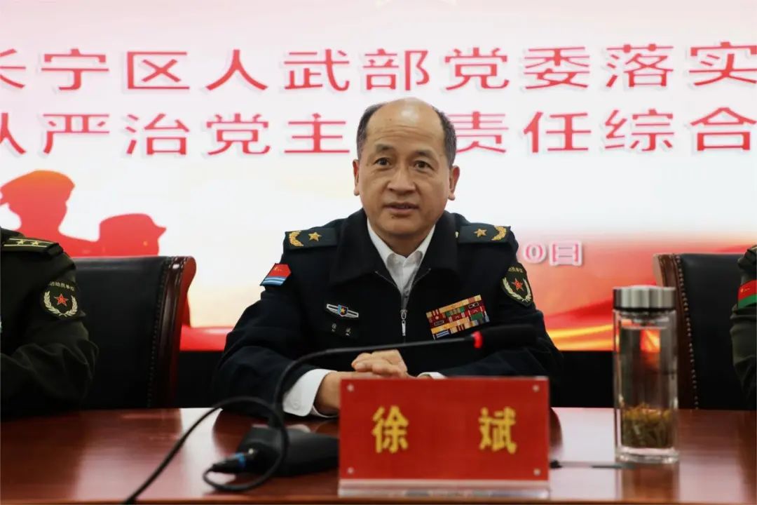 徐斌高度评价了长宁区近年来党管武装和人武部全面建设工作取得的成效,充分肯定了区委区政府对武装工作的高度重视和有力支持。他指出,长宁区人武部今年被军委国防动员部评为“安全稳定工作先进单位”,过去两年被警备区连续评为“全面建设先进人武部”,是党委班子贯彻一流“窗口”政治嘱托、奋力争先创优的最好诠释和行动回应。他强调,今年怎么看,重在总结有形的成绩和无形的因素,重在看成绩背后的问题;明年怎么干,重在聚焦党建引领、聚力党管武装、精耕国动援战上下更大功夫;重在加强队伍建设,调动和激发“四支队伍”积极性、创造性上下更大功夫;重在瞄准一流“窗口”、打造过硬品牌上下更大功夫,努力开创长宁武装工作新局面。