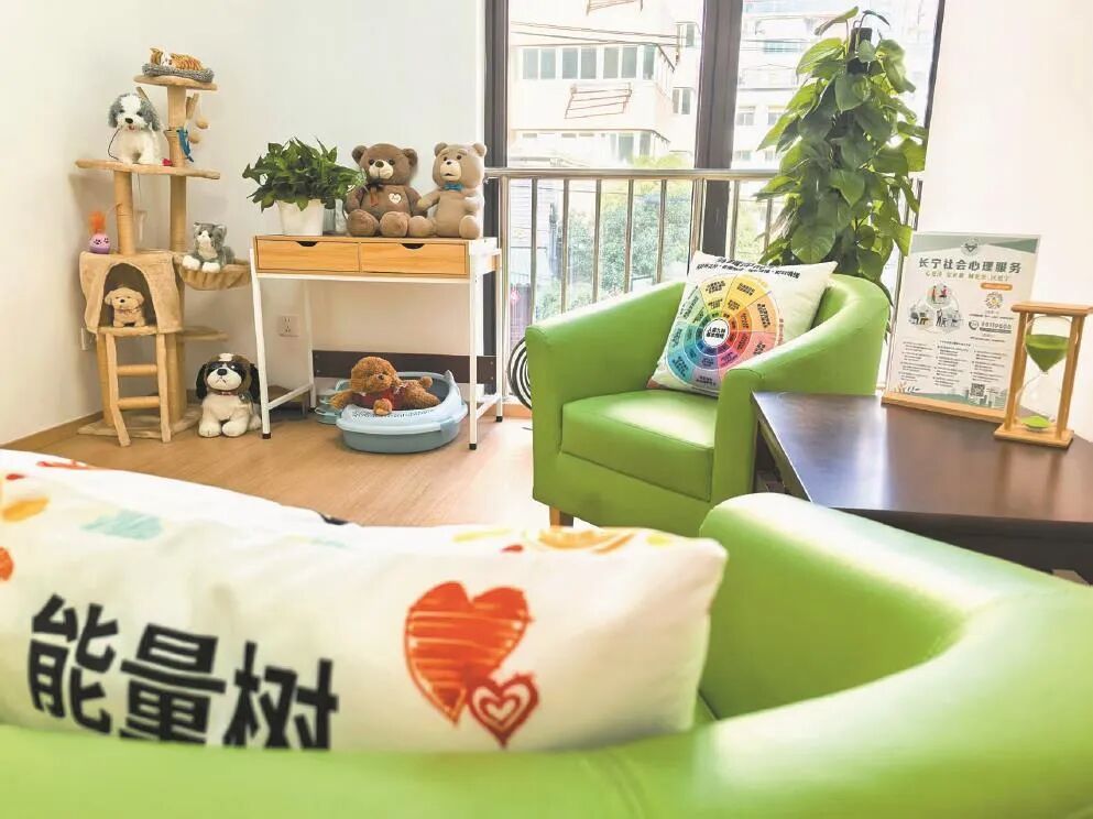 在街镇层面建立社会心理服务站。平均面积30平方米,均配备沙盘、心理减压椅等服务设施,作为深入社区辐射居委会、学校、企事业单位的“心理根据地”。