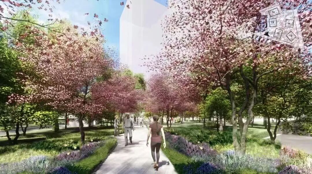 晶耀花园地处天山路与古北路交叉口,在景观设计上,花园以“体验从城市到自然的四季变换”为核心理念,植被配置遵循“疏密有致,四季有景”原则,力求呈现丰富季相景观。