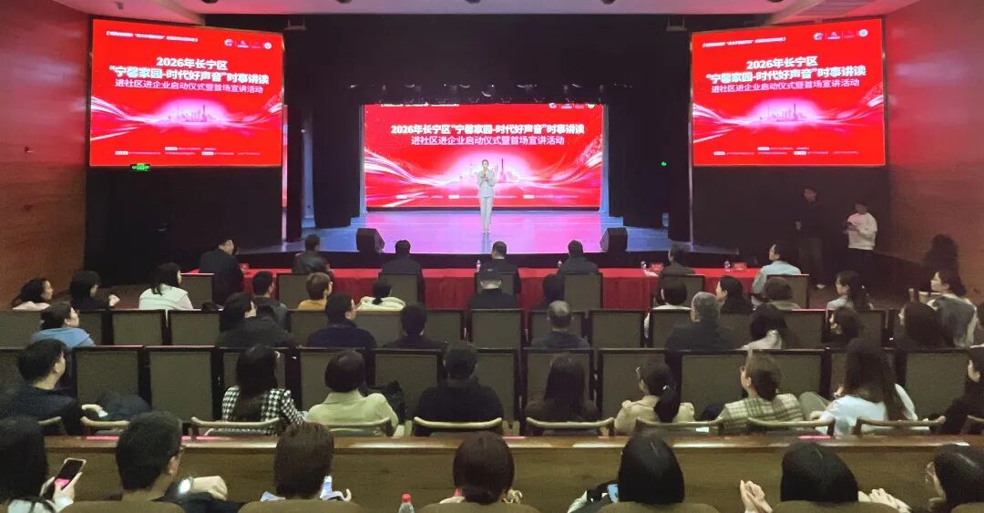 3月25日,长宁区2026年党的创新理论“百人千场进万站”文明实践示范宣讲暨“宁馨家园·时代好声音”时事讲读进社区进企业启动仪式和首场宣讲活动在长宁民俗文化中心举行。