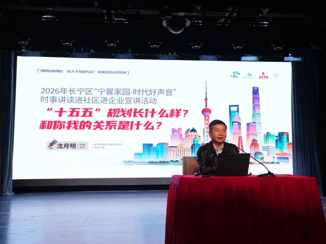 启动仪式后,新民晚报社时政新闻中心副总监、政法部主任沈月明作为首场宣讲嘉宾,为观众带来主题为《“十五五”规划长什么样?和你我的关系是什么?》的分享。