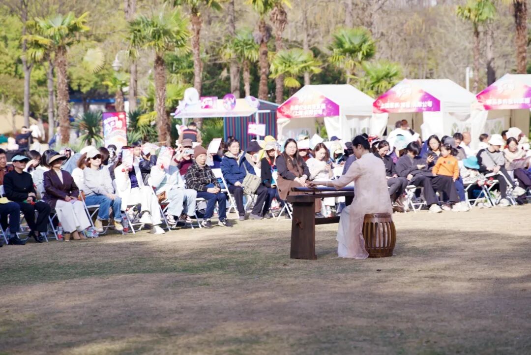 新华路街道的“雅韵非遗・何止琴曲”带来古琴《流水》演绎与昆曲戏服体验,让市民沉浸式感受传统雅韵;江苏路街道以沪苏粉画交流展搭配愚园春日Citywalk,串联艺术展览与城市漫游;华阳路街道的越剧沙龙与红色主题展览,将文化传承与红色教育结合。虹桥街道的科普阅读与二十四节气衍纸展,为孩子打开美育新窗;北新泾街道的宋锦体验与马赛克烛台DIY,碰撞出不同工艺之美;周家桥街道的“桥畔欢舞 韵动苏河”广场舞展示活动,充分展现社区舞蹈团队的靓丽风采与昂扬活力,传递邻里温情;天山路街道的曲艺戏曲综合场,荟萃传统艺术精华;仙霞新村街道的“廿载睦邻情,美育润仙霞”睦邻文化节群文展演在水霞公园热闹上演,社区文艺爱好者轮番登台,在美育浸润中增强社区凝聚力和居民归属感;程家桥街道的非遗篆刻与音乐鼓圈疗愈,兼顾艺术欣赏与身心放松;新泾镇的江南丝竹展演与二十四节气魔术,以创新形式让市民在家门口尽享有温度的美育盛宴。