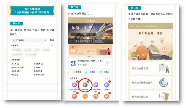 “随申办市民云—长宁旗舰店”上线“长护险服务一件事”,在全市率先实现长期护理保险期末评估线上申请,实现移动入口端一口受理、一表申请、一键提交,可惠及区内近1.2万名失能老人。