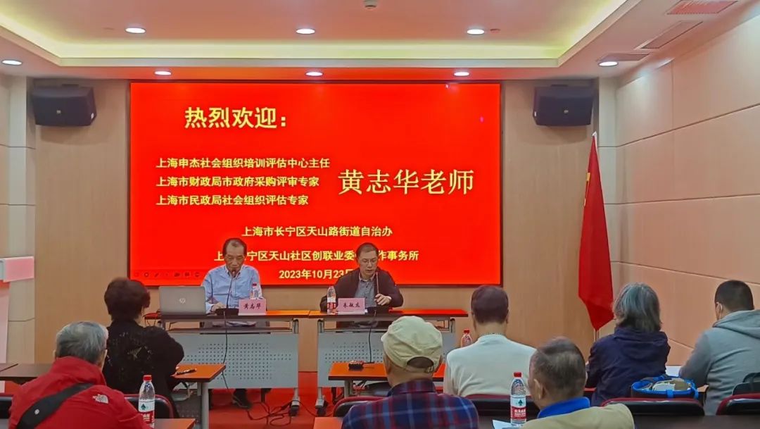 为满足天山社区各业委会开展《探索党建引领,红色业委会治理新模式》的项目需求,2023年10月23日上午,上海市长宁区天山路街道自治办和上海长宁区天山社区创联业委会工作事务所联合邀请了原上海市民政局置业社会工作处首任处长,民办非企业单位管理处首任处长,上海市社会组织服务中心首任法定代表人,上海市社会工作者协会副会长,上海市慈善基金会宣传部长,中国注册高级商务策划师,经济师,上海申杰社会组织培训评估中心主任黄志华做主题为《社区治理中的三驾马车》的专题讲座,惠东天山路街道自治办朱敏杰主任主持。