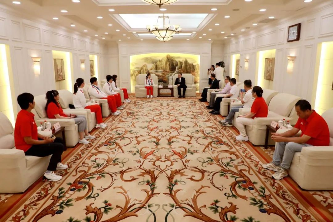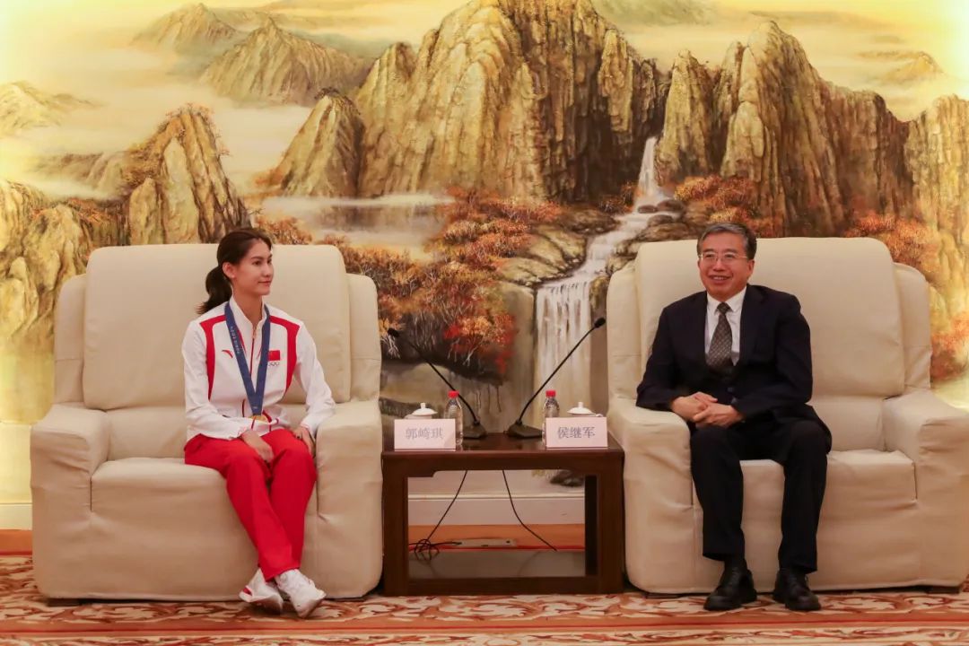 长宁区委副书记、区长侯继军在会见中,向长宁奥运健儿取得的优异成绩致以热烈祝贺。他说,在今年的奥运会上,你们在赛场上拼搏进取,为祖国赢得了荣誉,向世界展现了中国健儿的良好形象和奥林匹克精神。侯继军希望运动员们在赛后好好休息,调养身心,再接再厉,持续提升竞技水平,在新征程上勇攀高峰、实现超越。侯继军还表示,未来,长宁区将继续大力支持体育事业的发展,为竞技体育和群众体育健康发展创造更好条件、提供更优服务,鼓励更多的年轻人参与其中,享受体育运动带来的精神力量。