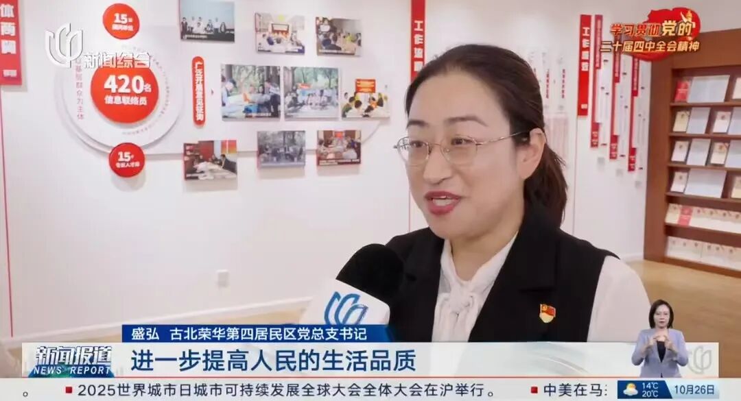 坚持人民至上,为基层工作者指明了工作方向。古北荣华第四居民区党总支书记盛弘表示,要进一步地去践行全过程人民民主的重大理念,倾听民意、汇聚民智,同时也要更加精准地去对接群众的急难愁盼,然后把大家凝聚起来,进一步提高人民的生活品质。