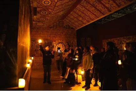 2月28日,东方网报道:2026年3月3日(农历正月十五),“何以敦煌·念念回响”敦煌文化艺术公益展将推出“正月十五秉烛祈福观展日”,观众将在全暗场的展厅中,凭借马灯、蜡烛的微光沉浸式探访莫高窟的瑰丽世界,完成一场跨越时空的祈福与对话。据悉,为增添节日趣味与互动性,主办方特别推出福利:观众预约元宵节(3月3日)观展名额后,入场时如果身着汉服、唐装等中华传统服饰,可获赠一盏精美的“公益心灯”(电子蜡烛)。这盏灯不仅用于照亮观展之路,更可作为打卡道具,让观众在敦煌壁画背景下,拍摄下充满古风意蕴的元宵纪念照,实现“国风服饰”与“敦煌元素”的创意碰撞。