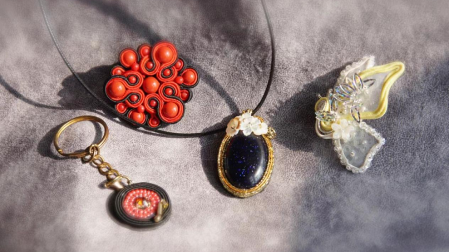 欧洲饰带刺绣是欧洲传统的刺绣。把天然石和珠子等材质用饰带围起来,形成流线型的曲线,然后用缝针固定饰带,做成造型。