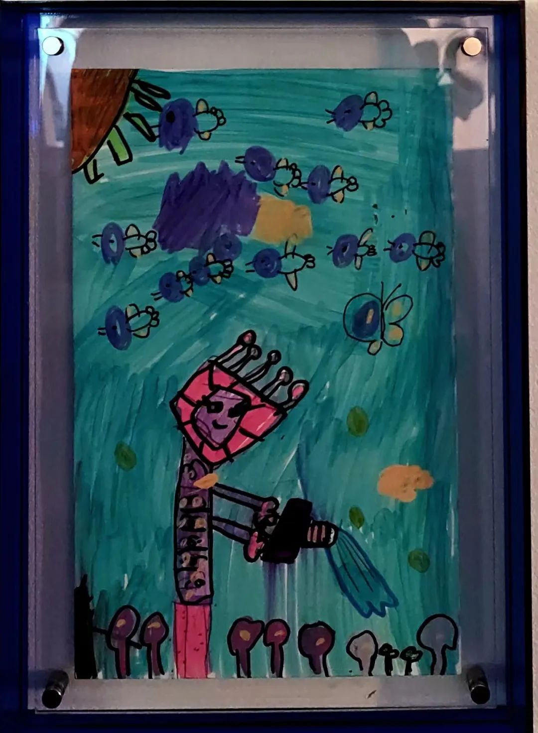 本次展览位于刘海粟美术馆一楼展厅,步入展厅,墙面上悬挂着五彩缤纷的画作格外显眼,小朋友们凭借着天马行空的想象力在作品中融入自己对艺术的理解,为刘海粟美术馆注入了一丝充满童趣的色彩。